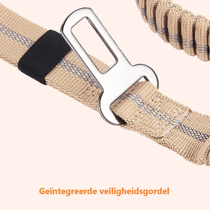 Brikly's No Pull Bungeeriem heeft een ingebouwde autogordelclip. Hierdoor blijft je hond veilig op zijn plek tijdens autoritten. Geen zorgen meer over afleidingen terwijl je rijdt. Je viervoeter zit veilig en jij kunt met een gerust hart onderweg zijn.